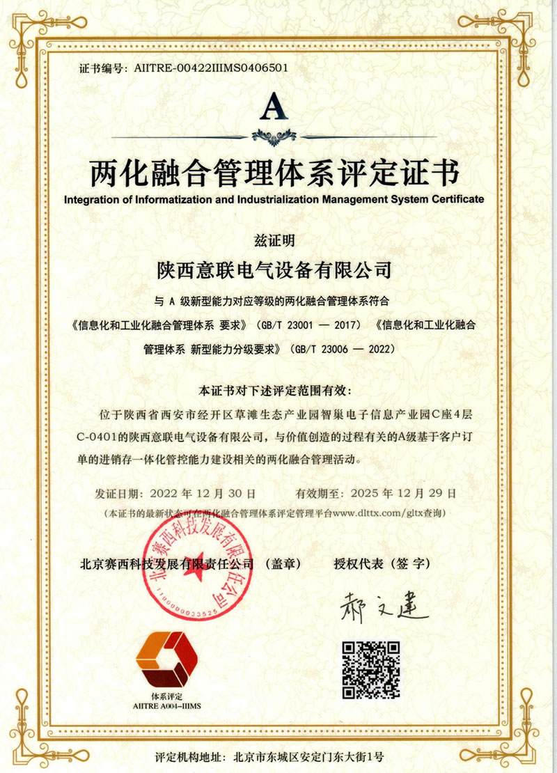 祝賀陜西意聯電氣通過兩化融合管理體系貫標認證